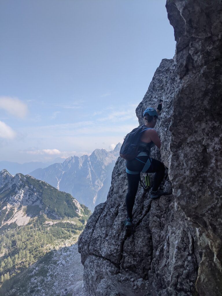 - Trasa ferraty przebiega w cieniu, po północnej stronie szczytu Mala Mojstrovka. Tym samym jest dobrym pomysłem na aktywne spędzenie upalnego dnia.