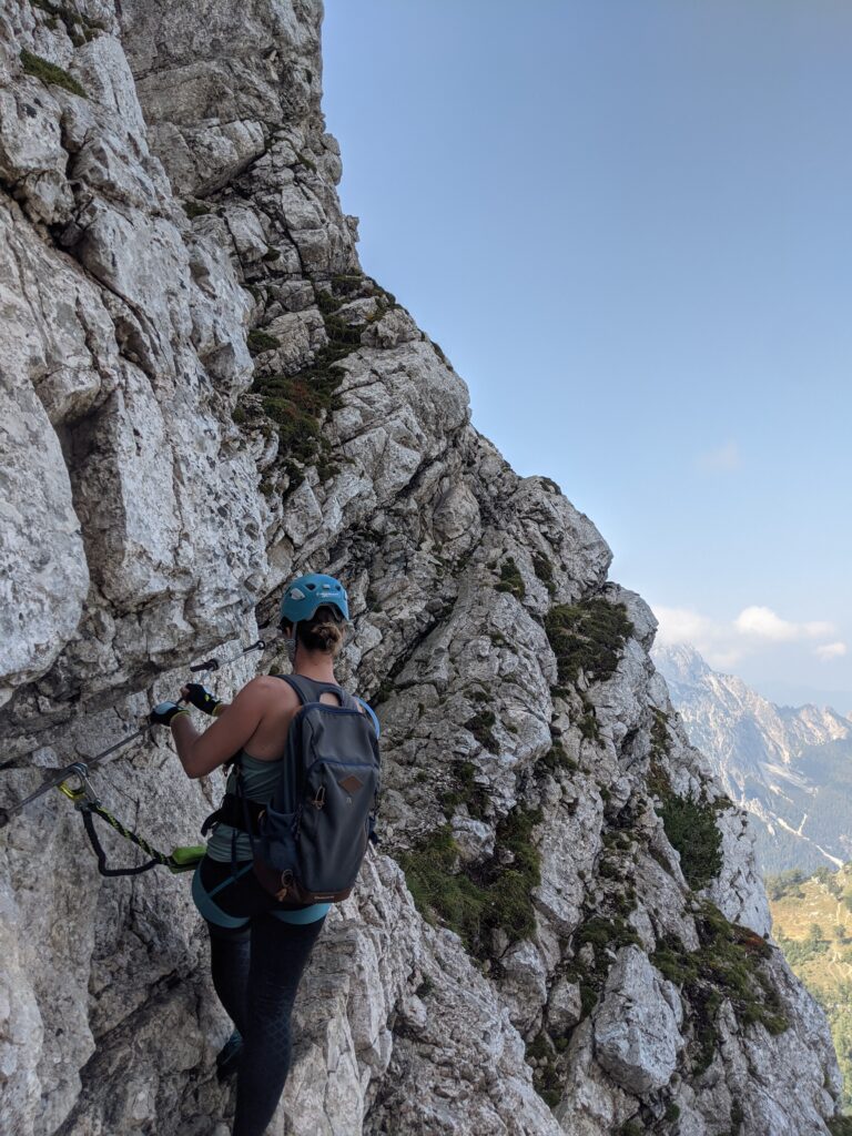 - Na wędrówkę koniecznie zabierz podstawowy sprzęt na via ferraty: kask, lonżę, uprząż, rękawiczki ochronne, a także buty z przyczepną podeszwą.
