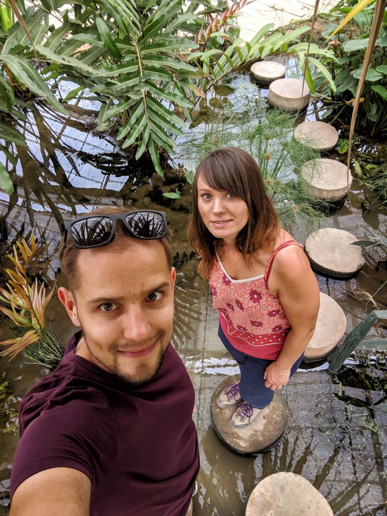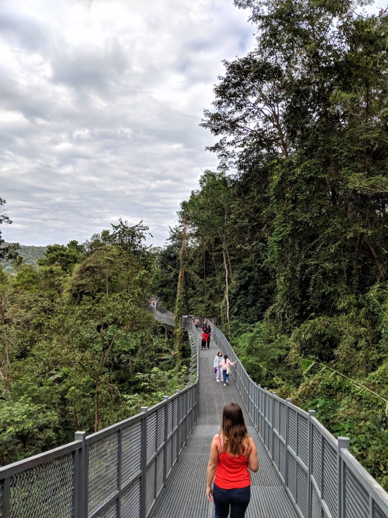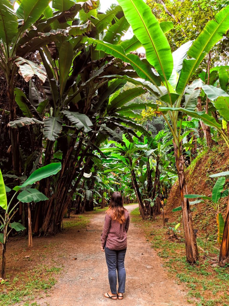 Ogród jest bardzo ładny i ciekawy. Znajduje się w nim między innymi alejka, w której rośnie 200 różnych odmian bananowców! Są banany żółte, zielone, fioletowe. Małe, duże, średnie 😉 W ogrodzie znajduje się metalowa konstrukcja, coś a’la chodnik w koronach drzew. Trasa jest dostosowana do osób niepełnosprawnych, za co duży plus! Idąc po platformie można (jeśli macie szczęście!) zobaczyć latające jaszczurki, które rzucają się z drzew, i szybują 9 metrów w dół. Chodnik ma 400 metrów długości, i wznosi się na wysokość 20 metrów.
