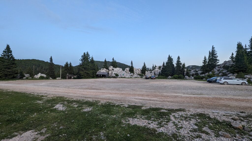 Podczas naszych wizyt w Parku Narodowym Welebitu Północnego, bazą wypadową były miejscowości Senj i Sveti Juraj. Stamtąd samochodem ruszaliśmy w kierunku północnego wejścia do parku, czyli Babic Sica. Na Mapach Google wejście to oznaczone jest jako „Ulaz u Nacionalni park Sjeverni Velebit”. W tym miejscu znajduje się budynek obsługi parku i bezpłatny parking. Tu też kupujemy bilety wstępu i albo ruszamy na szlak, albo jedziemy dalej w kierunku Schroniska Zavizan – Hrvatski planinarski savez – Planinarski dom Zavižan. Do parkingu poniżej schroniska prowadzi szutrowa 6-kilometrowa droga. Przy parkingu znajdują się tablice informacyjne, ławki i stoły, a także ekologiczne WC. Parking jest bezpłatny.