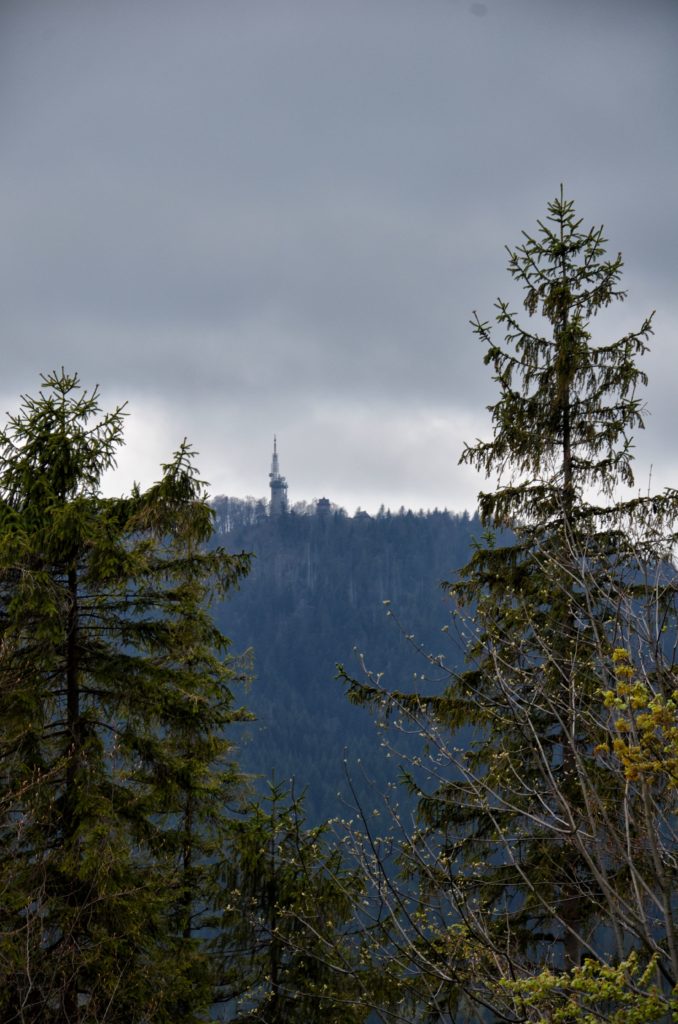 Widok ze szlaku na szczyt Lubonia Wielkiego