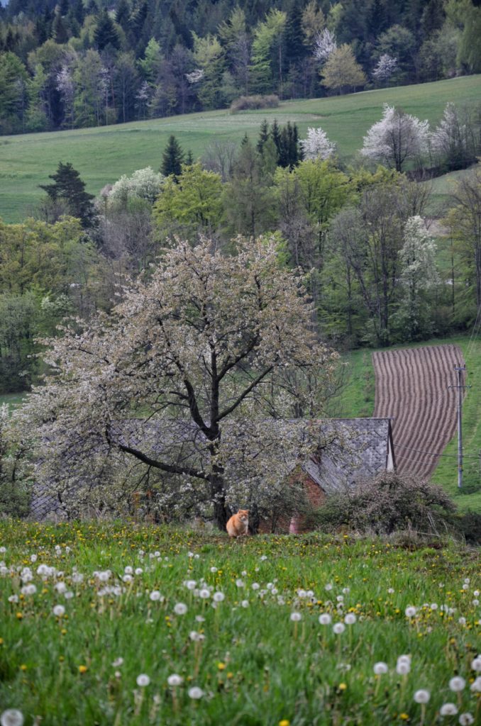 Uroczy rudy kociak przy zielonym szlaku na Szczebel