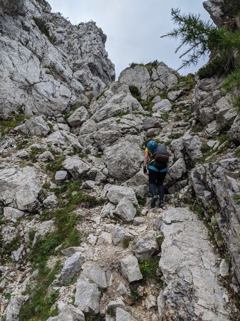 - Na trasę koniecznie zabierzcie zapas wody — po drodze nie ma żadnego źródła wody! I tu uczulam na tę kwestię, ponieważ przeczytałam na pewnym blogu, że wodę podczas wędrówki można uzupełnić w źródełku. Nie można — źródełko jest wyschnięte, a Alpy Julijskie znane są z tego, że są w przeważającej większości górami „bezwodnymi”.