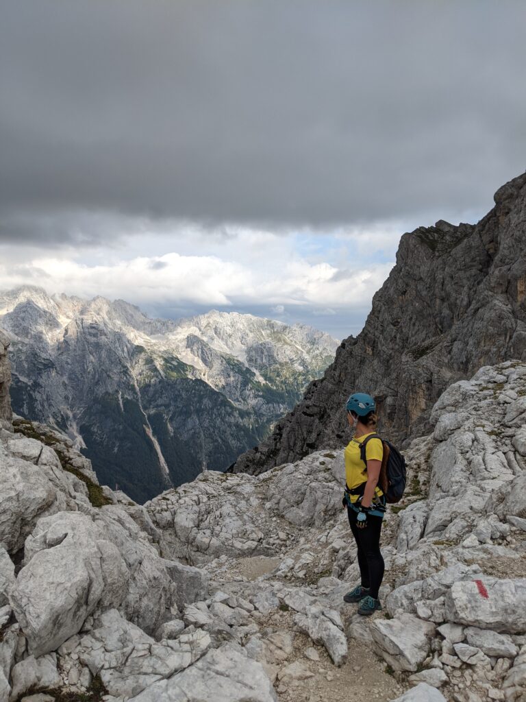 Wędrówka, podczas której wejdziemy na najwyższy szczyt Alp Julijskich — Triglav 2864 m n.p.m. Trasa jest długa: 12 godzin w dwie strony. Ponadto bardzo wymagająca — zarówno kondycyjnie jak i technicznie. Podczas wejścia do pokonania mamy prawie 2000 metrów przewyższenia oraz przejścia po trzech via ferratach. Trasa, która prowadzi przez ferraty, jest równocześnie drogą górską, o bardzo dużej ekspozycji. Ponadto wymaga umiejętności poruszania się w tego typu terenie. Dodatkowym urozmaiceniem szlaku są przejścia po wąskich półkach skalnych, elementy wspinaczki w nieubezpieczonym terenie i przejścia przez piarżyska. Trasa na Triglav naszym zdaniem nie nadaje się na wędrówkę dla osób początkujących oraz niemających doświadczenia na via ferratach. Przy planowaniu wędrówki warto wiedzieć, że bezwzględnie na szlaku należy mieć kask, lonżę, uprząż, rękawiczki na ferraty, a także odpowiednie buty z przyczepną podeszwą.