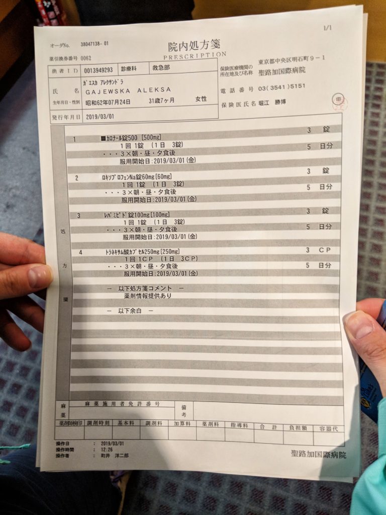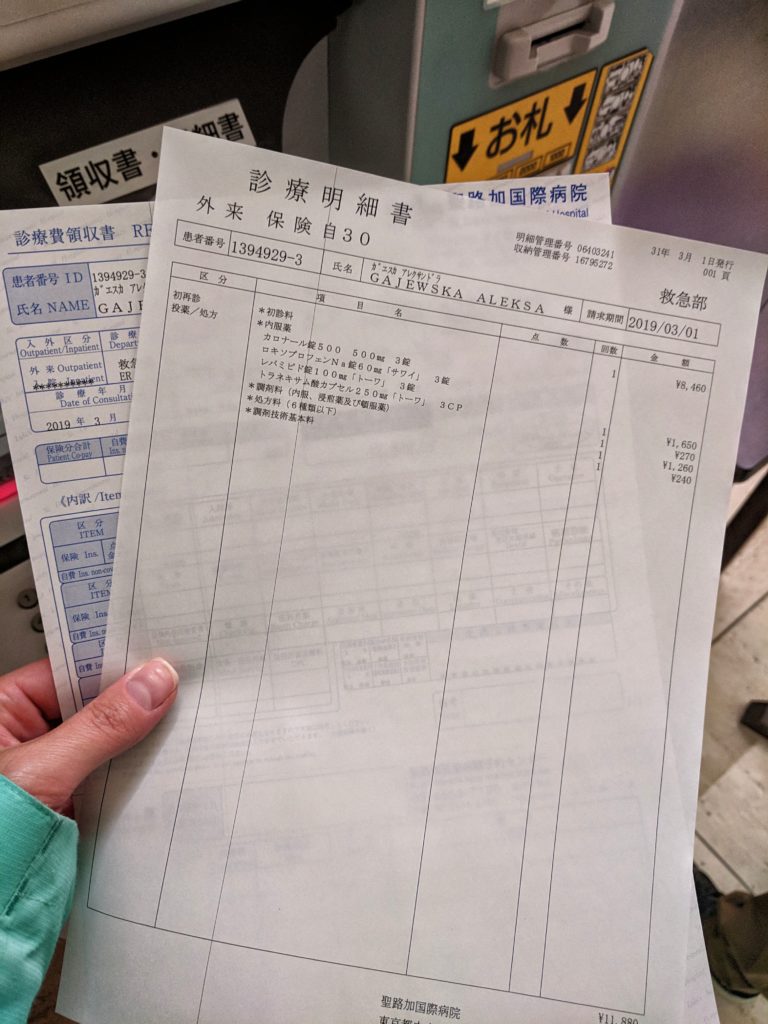 Moja wizyta w szpitalu kosztowała wraz z przepisanymi lekami 12,830 JPY czyli 420 zł.