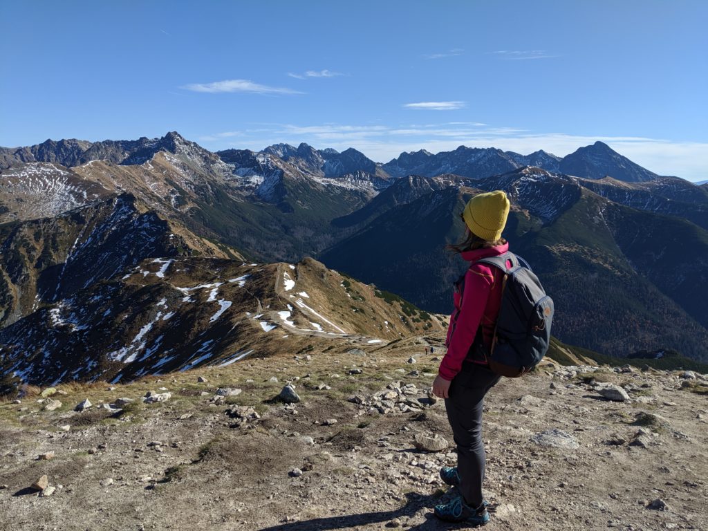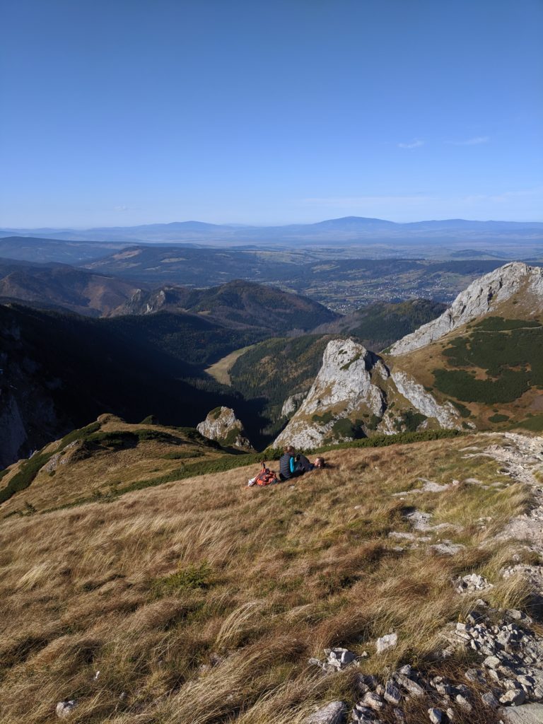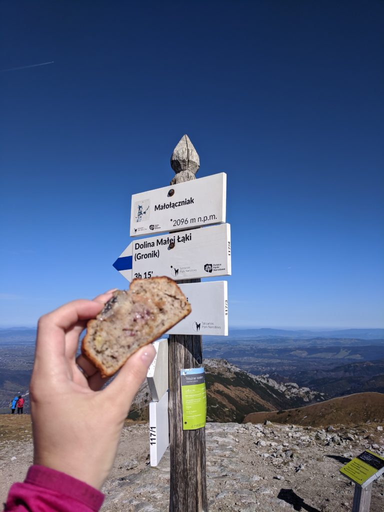 W związku z tym, że pogoda nas rozpieszcza na szczycie Małołączniaka robimy sobie przerwę na odpoczynek, podziwianie widoków i posilenie się przed kolejnym etapem wędrówki. Z tego miejsca dziękuję przede wszystkim Monice z bloga Sezony za pyszny chlebek bananowy, który dodał nam sporo energii 😉