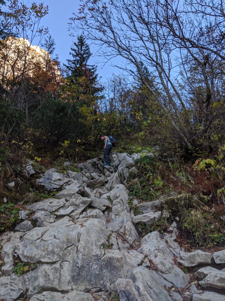Zejście po żłobkach krasowych